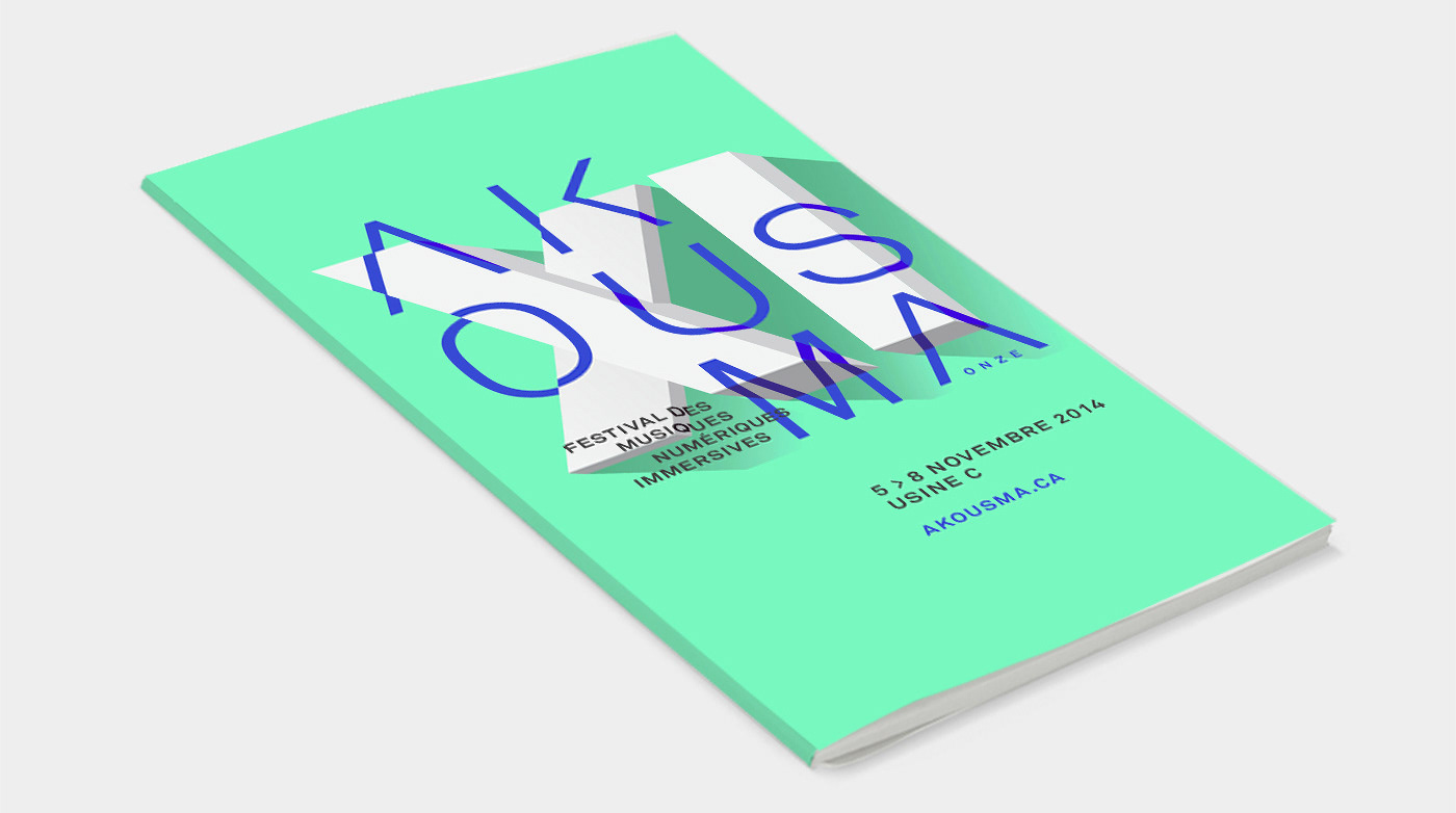 For the 11th edition of Akousma, an electronic music festival in Montreal, we created a bold and graphic visual identity that would reflect the movement of sound travelling through a three-dimensional space.