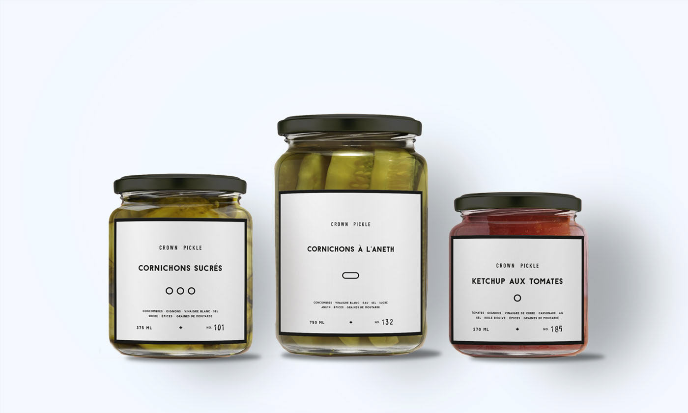 Packaging design created for the Crown Pickle Company. A clean and minimalist approach was used to reflect the natural and authentic nature of the product.