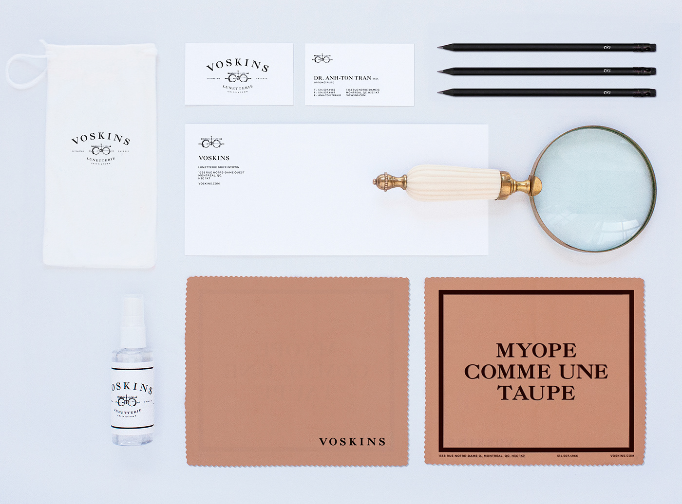 Branding created for high-end glasses shop in Griffintown. In order to celebrate society’s renewed appreciation for glasses, a classic and vintage aesthetic was combined with bold, comical statements that would help people embrace their near or farsightedness.